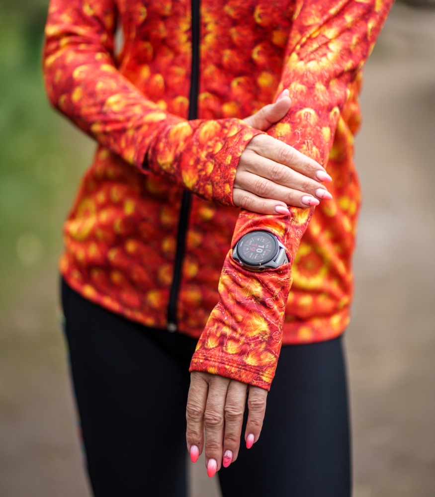 Bluza treningowa Papryczki by Pati ma super funkcjonalne kieszonki, w których bez problemu schowasz wszystkie potrzebne drobiazgi, jak klucze, telefon albo chustę typu buff. A to jeszcze nie wszystko! Specjalne rozcięcie na rękawie pozwoli Ci błyskawicznie zerknąć na zegarek i kontrolować swoje postępy, zwłaszcza podczas intensywnych interwałów. Co więcej, sama decydujesz, po której stronie ma być to sprytne wycięcie - po prawej czy lewej, wystarczy, że dasz nam znać przy zamówieniu!