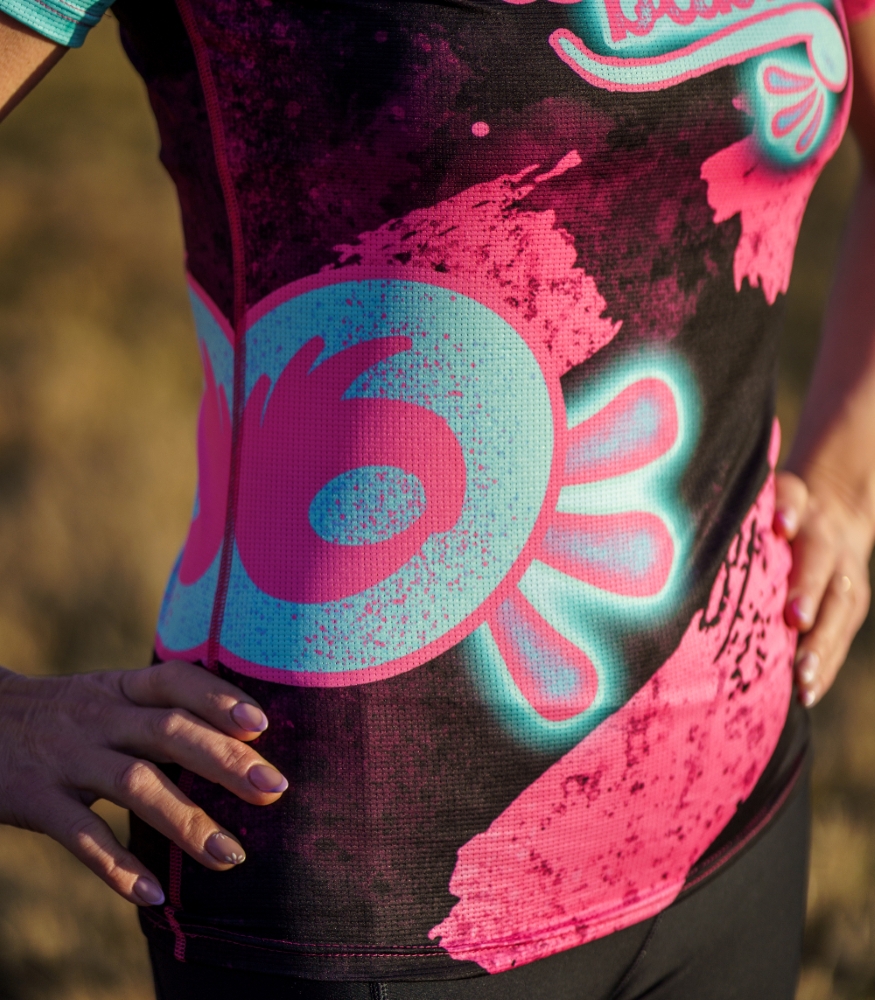 Loco Babka Fluo to nowa odsłona kultowej koszulki dla kobiet, które nie boją się wyróżniać i zarażają świat swoją pozytywną energią. Czarne tło podkreśla neonowe, fluo różowe i turkusowe akcenty, tworząc wyrazisty, dynamiczny wzór. To koszulka dla tych, które kochają ruch, odważne stylizacje i nie boją się być sobą.