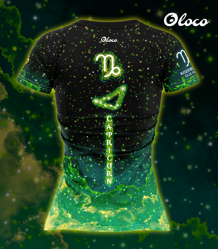 Zaprojektowana na podstawie motywu zodiakalnego koszulka zachwyca połączeniem czerni, grafitu i głębokiej zieleni. To barwy, które kojarzą się z ambicją, powagą i wytrwałością – cechami typowymi dla Koziorożca: zdyscyplinowanego, odpowiedzialnego, cierpliwego i praktycznego. Na froncie koszulki widnieje symbol Koziorożca otoczony świetlistą, kosmiczną teksturą, a tło przypomina gwiezdną mgławicę. Całość tworzy efekt tajemniczej energii i siły wewnętrznej – idealny dla osób, które lubią wyrażać siebie poprzez detale. To koszulka, która przyciąga wzrok i nadaje stylu nawet najprostszym zestawom sportowym.