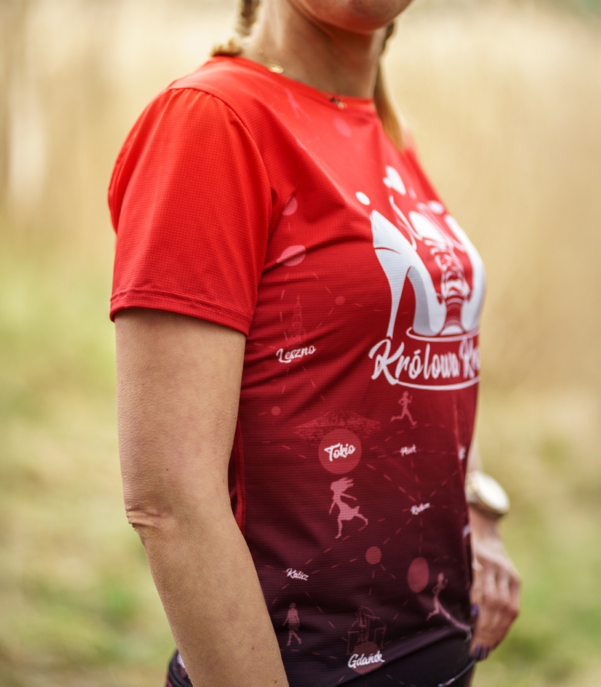 Damska koszulka techniczna Królowa Kroków Czerwone Wino