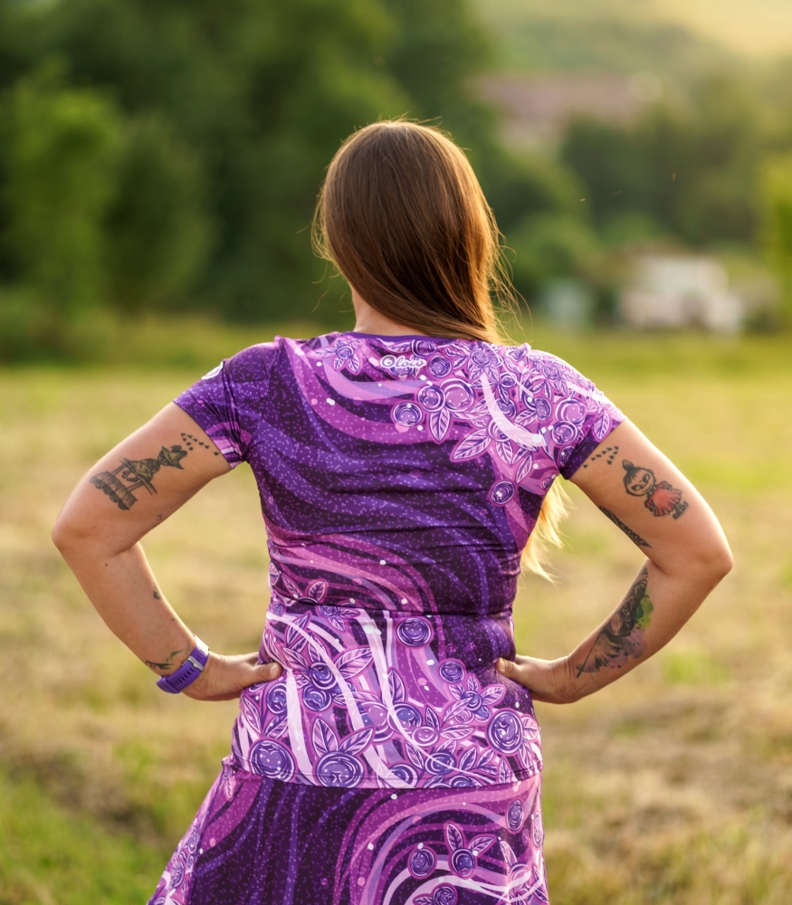Damska koszulka techniczna Jagody - fioletowa energia do treningu