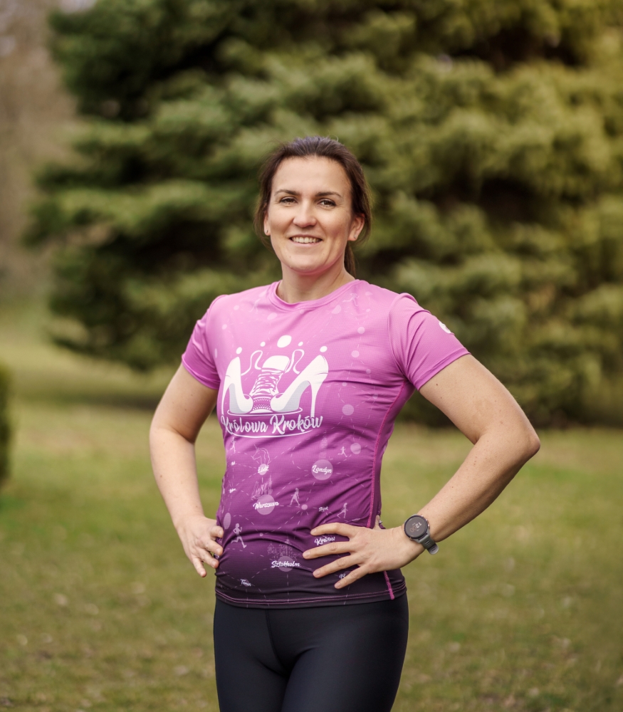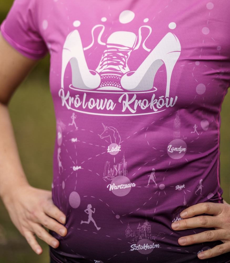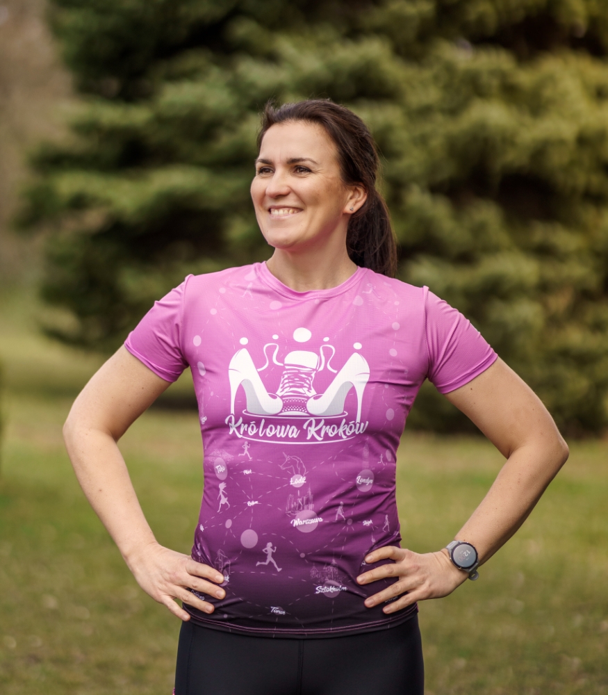 Motywuj innych z damską koszulką techniczną “Królowa Kroków”