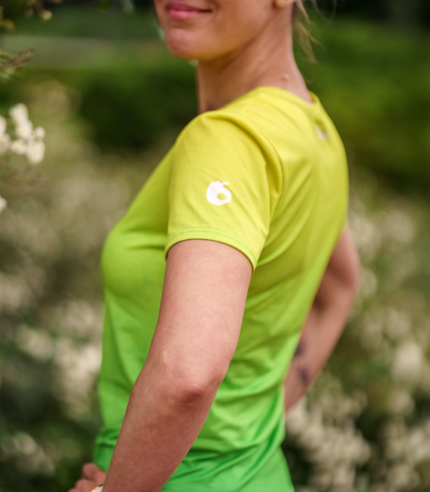 Zielono-żółta koszulka sportowa Limonka to świetna opcja do biegania – zarówno na krótkich dystansach, jak i w trakcie zawodów. Nasze klientki chętnie noszą ją również na zumbę, siłownię, zajęcia fitness, pilates, nordic walking, wypady na rowerze, deskorolkę czy górskie wędrówki. To jeden z najbardziej uniwersalnych modeli w naszej kolekcji.