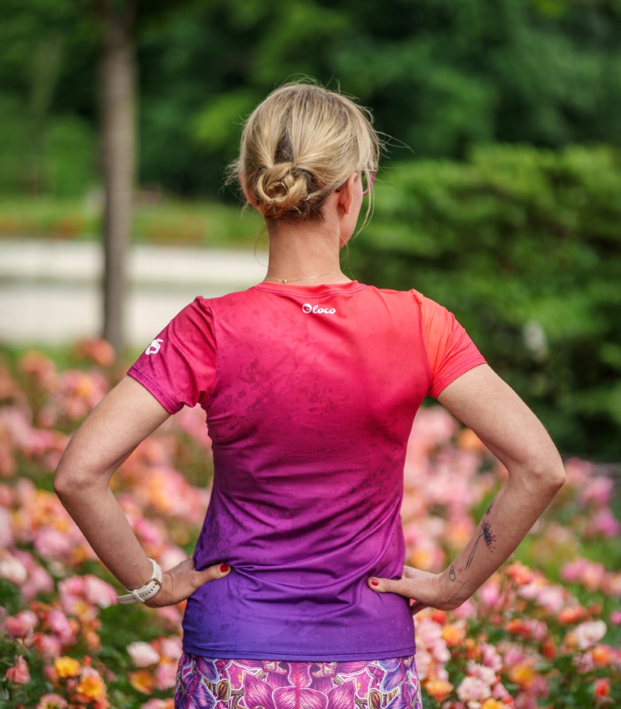 Kochasz aktywność fizyczną i szukasz niezawodnej odzieży sportowej, która sprosta każdej pogodzie? Damska koszulka techniczna Śliwka z gradientowym nadrukiem to strzał w dziesiątkę! Zachwyca nie tylko unikalnym wyglądem, ale przede wszystkim zaawansowaną technologią, która zadba o Twój komfort podczas każdego treningu.