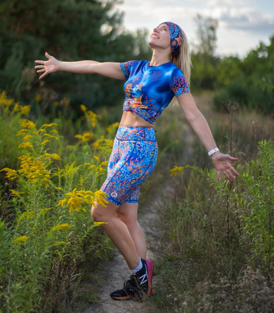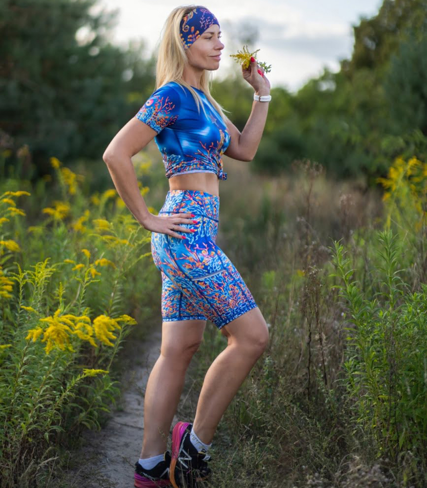 Mój pierwszy zakup w Loco, od tych leggi zaczęła się moja przygoda z tą marką 🙂 Zakupione we Wrocławiu przed półmaratonem, dały mi mega komfort i zrobiłam w nich życiówkę rok temu 🙂 Piękny wzór, zwłaszcza dla wielbicielek błękitów i morskich głębi 🙂