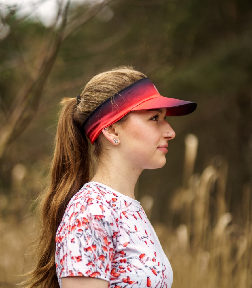 Kolorowy daszek sportowy Czerwone Wino powstał z myślą o wymagających kobietach. Jeśli cenisz sobie komfort, praktyczność akcesoriów sportowych i lubisz wyróżniać się z tłumu, to ten damski daszek przeciwsłoneczny będzie idealnym wyborem! Nie tylko zachwycająco wygląda, ale również skutecznie osłoni Twoje oczy przed słońcem, a nawet deszczem. Oryginalne przejście tonalne przyciągnie spojrzenia i doda Ci pewności siebie. Z pewnością pokochasz ten daszek i będziesz go zabierać na każdą aktywność na świeżym powietrzu!