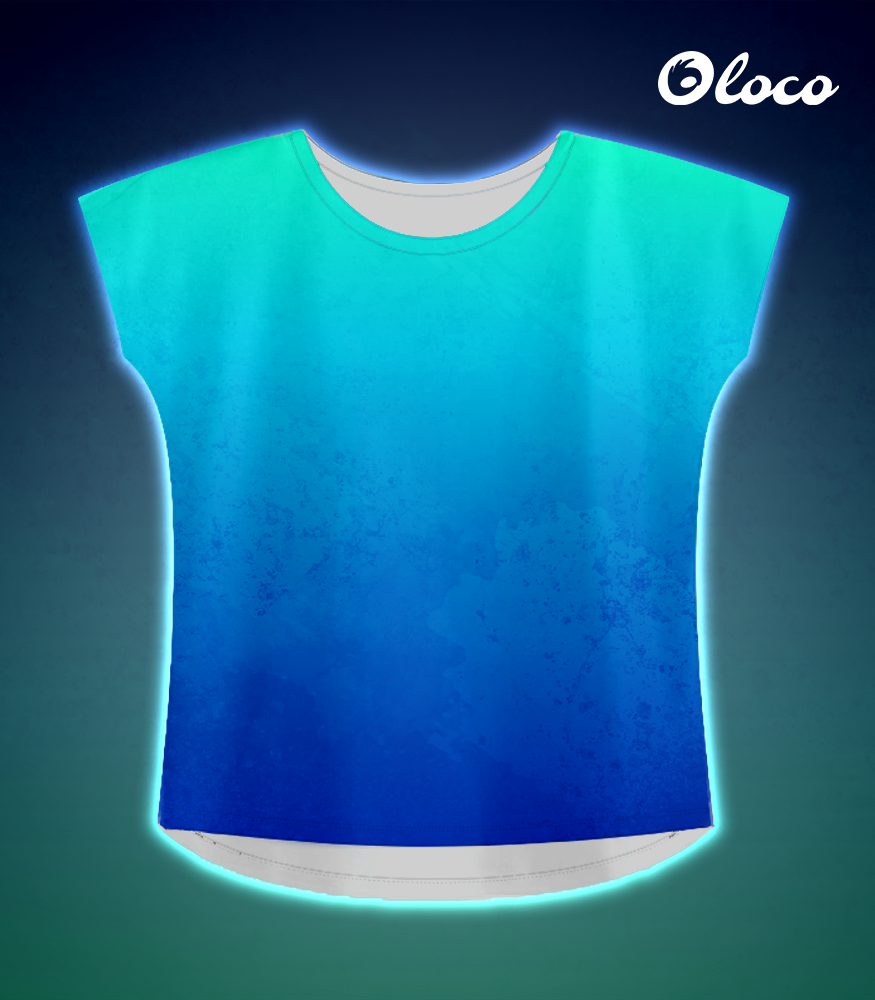 Koszulka oversize w przepięknym gradiencie Błękitna Laguna. Idealna na zumbę, spacer i wypad do kina.