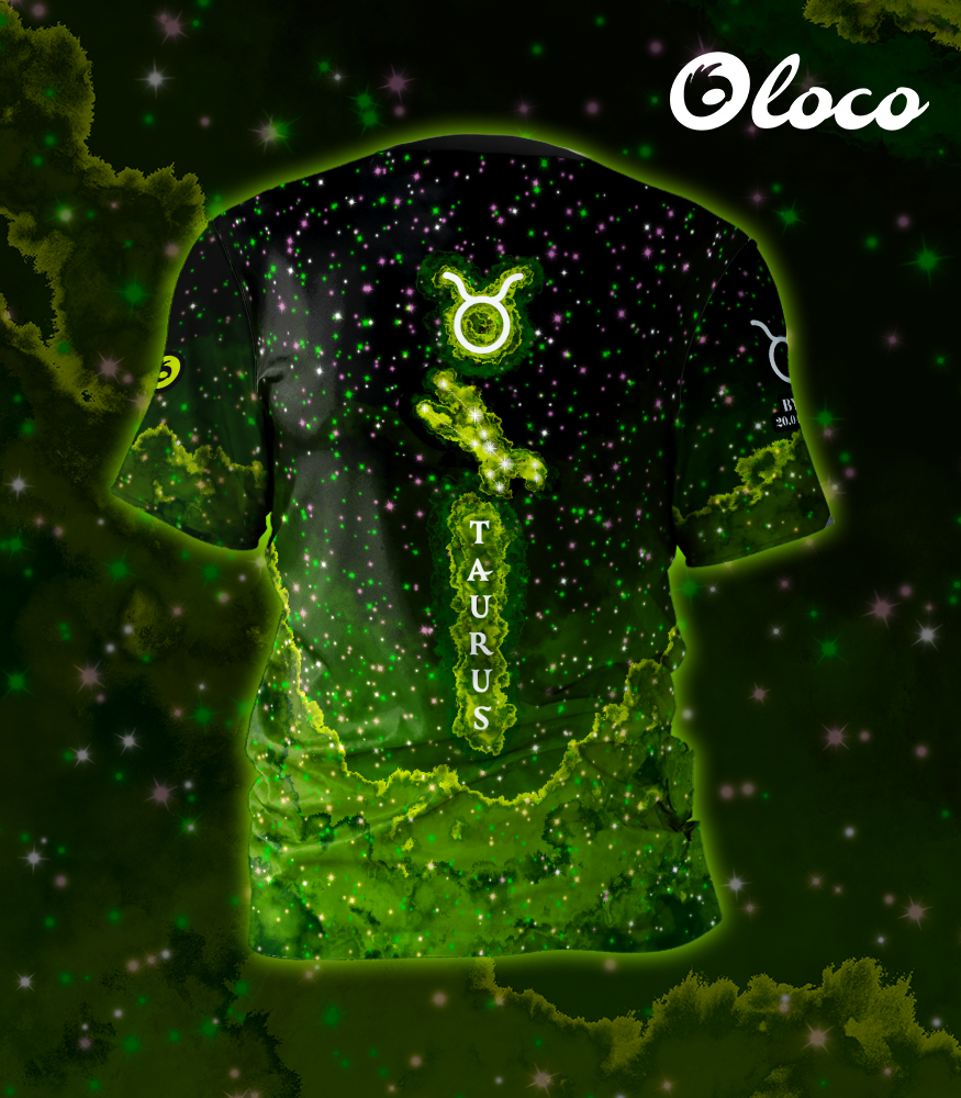 Model Taurus przyciąga uwagę swoim unikatowym wyglądem. Dominująca, intensywna zieleń nawiązuje do natury i harmonii, podkreślając cechy przypisywane Bykom tj. cierpliwość, lojalność, praktyczność i wytrwałość. Kosmiczny motyw z gwiazdami i subtelnymi rozbłyskami dodaje energii, a centralnie umieszczony symbol Byka nadaje koszulce charakteru. Na plecach znajduje się łacińska nazwa znaku, co podkreśla jej wyjątkowy, spersonalizowany styl. To koszulka, która łączy spokój z dynamiczną energią.