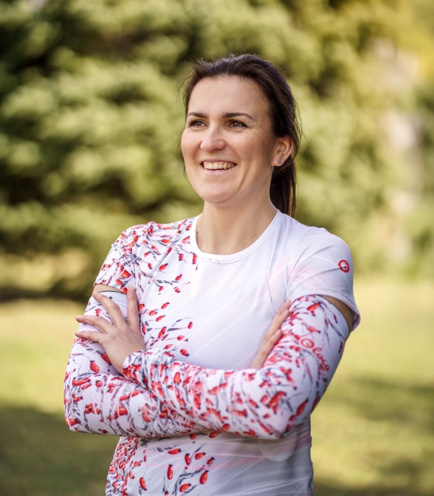 Motyw dzikiej róży Szypszyny doda Ci powera, a praktyczne rękawki zapewnią Ci wygodę podczas ćwiczeń.