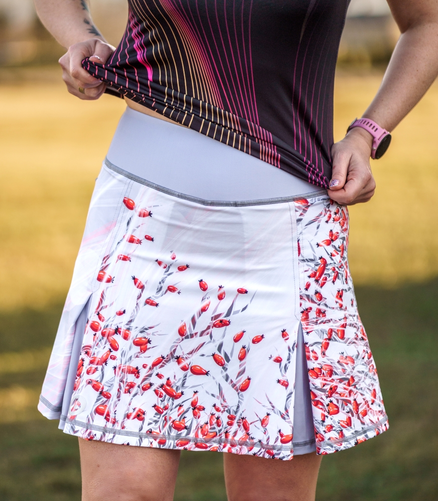 Spódniczka Szypszyna to połączenie stylu, wygody i pełnej funkcjonalności. Zaprojektowana z myślą o aktywnych kobietach, które szukają odzieży sportowej na każdą porę roku i chcą czuć się modnie oraz komfortowo. Inspirowana subtelnym pięknem dzikiej róży, jest idealnym wyborem zarówno na treningi biegowe, fitness, jak i codzienne aktywności na świeżym powietrzu.