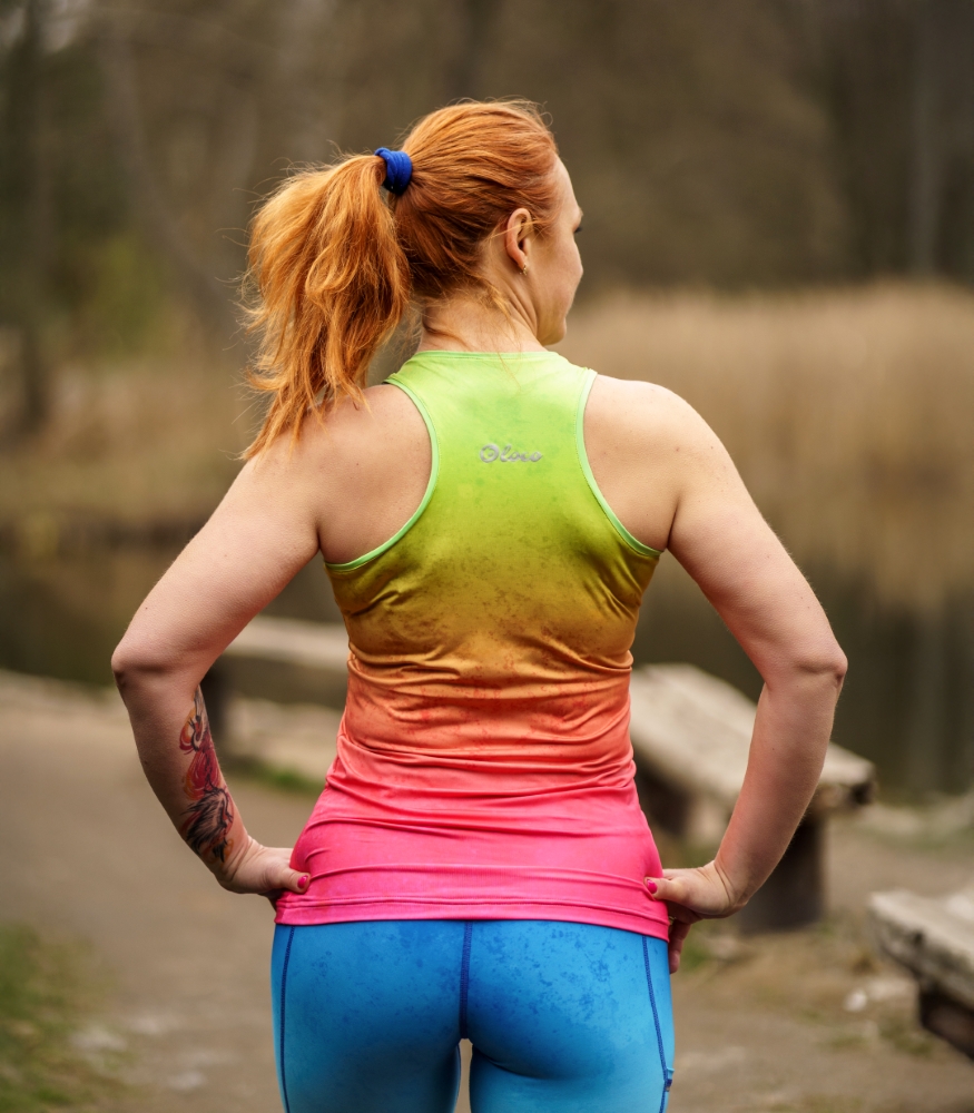 Sportowa bokserka tanktop damski Mango po prostu zachwyca! Spójrz tylko na to efektowne przejście kolorów - od radosnego limonkowo - żółtego u góry do intensywnego różu na dole. Ten top bez rękawów rozpromieni każdy Twój dzień i doda Ci mnóstwo pozytywnej energii. Wybierz swobodę ruchów, żywe barwy i szybkoschnącą tkaninę! Zamów ten wyjątkowy tank top i zakochaj się w całej naszej gradientowej kolekcji! kolekcję Loco Sport.