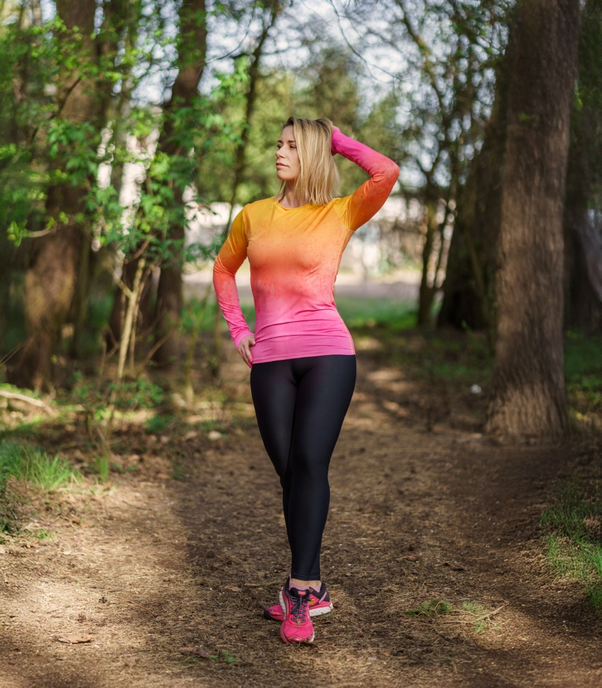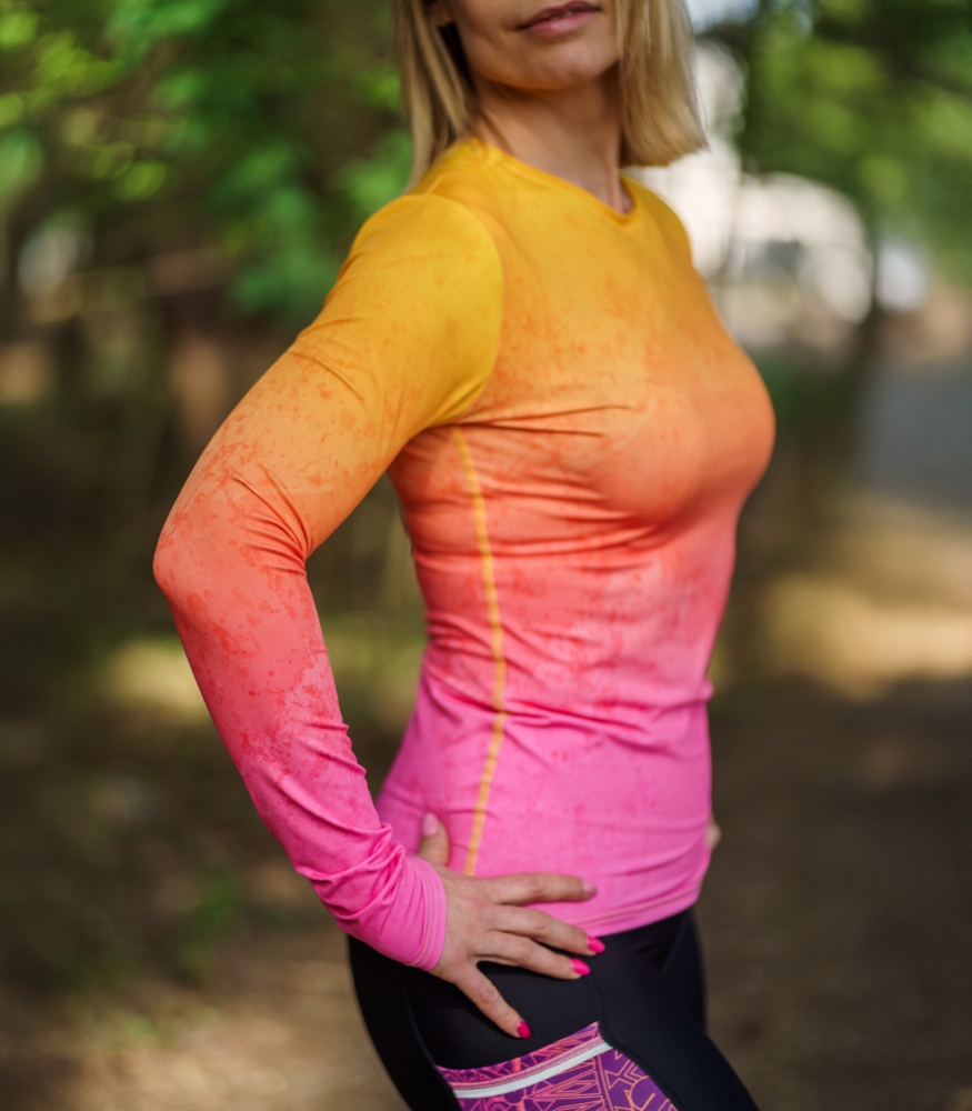 Termoaktywna bluzka sportowa damska z długim rękawem Brzoskwinka to synonim komfortu i funkcjonalności. Dzięki zaawansowanej technologii DryClim, błyskawicznie odprowadza wilgoć, pozostawiając Twoją skórę suchą i świeżą. Unikatowy gradient, płynnie przechodzący od słonecznego żółtego do intensywnego różu, doda Ci pewności siebie i sprawi, że poczujesz się wyjątkowo. Niech kolor stanie się Twoją dodatkową motywacją! Co ważne, ta oddychająca koszulka sportowa zachowuje intensywność barw i swoje techniczne właściwości nawet po wielu praniach.