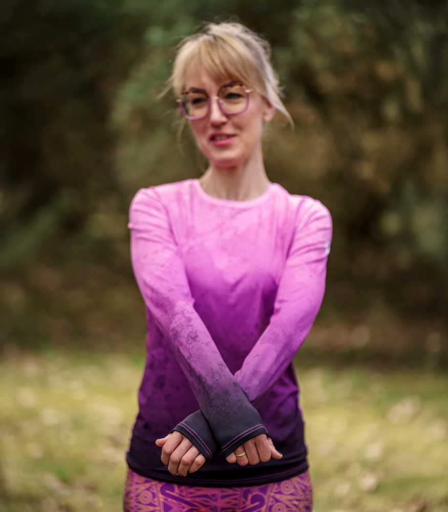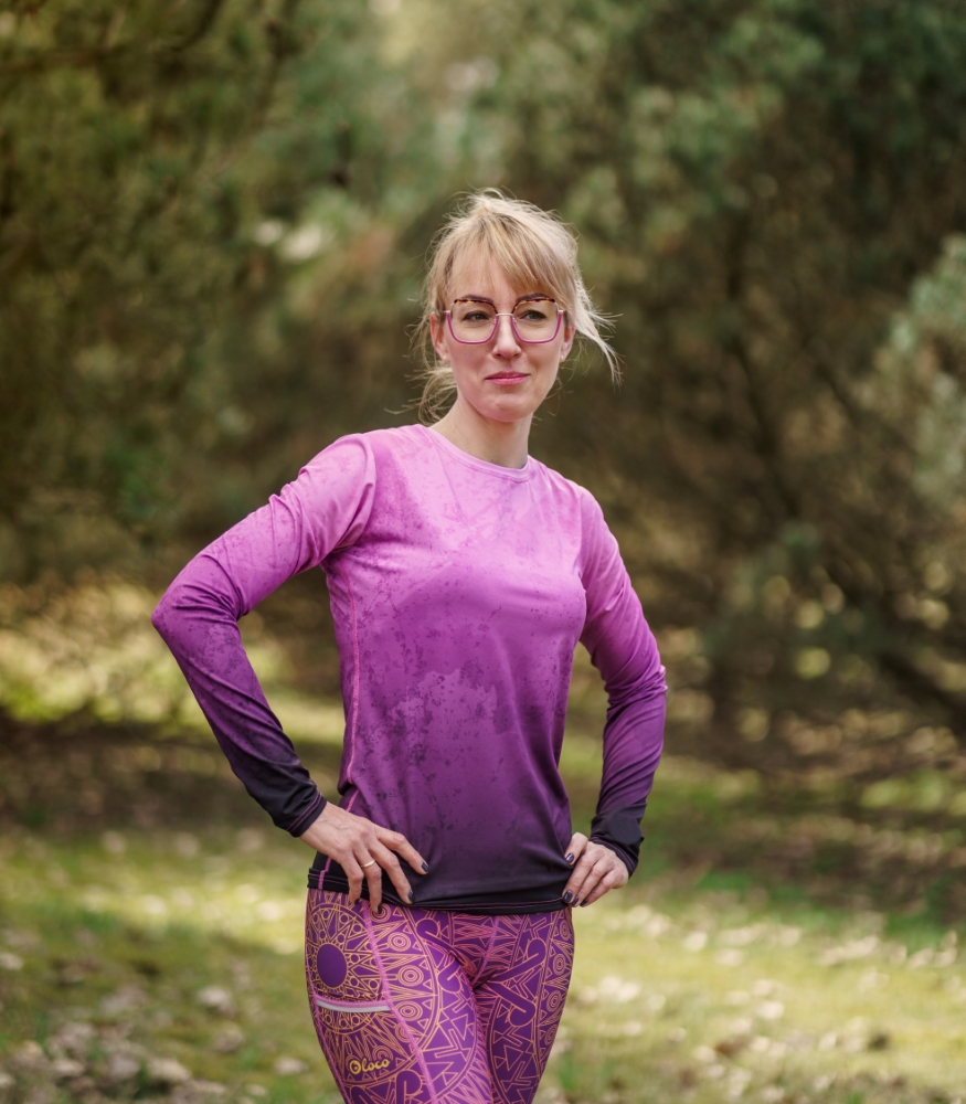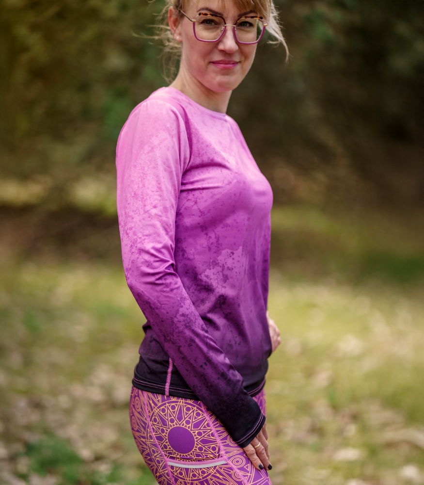 Sportowy longsleeve damski Jeżyna to coś więcej niż odzież sportowa. To świetne połączenie funkcjonalności z wyjątkową paletą barw. Efektowny gradient barw, który subtelnie przechodzi od jasnego fioletu ku głębokiemu odcieniowi, doda Ci mnóstwo pozytywnej energii nie tylko podczas ćwiczeń, ale ale także na co dzień. Stworzony dla kobiet, które kochają sport i cenią sobie oryginalny wygląd, ten longsleeve łączy w sobie praktyczność z miłym dla oka wzornictwem.